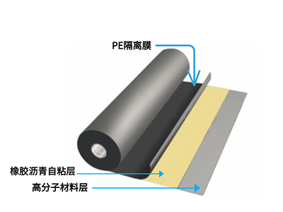 預(yù)鋪/濕鋪?zhàn)哉尘酆衔锔男詾r青防水卷材是以聚酯纖維無(wú)紡布為胎基,兩面涂自粘改性瀝青,下表面覆涂硅隔離膜、聚乙烯膜、細(xì)砂等隔離材料,上表面覆涂硅隔離膜或涂硅隔離紙作為隔離材料制成的一種適用于預(yù)鋪/濕鋪法施工的自粘防水卷材。